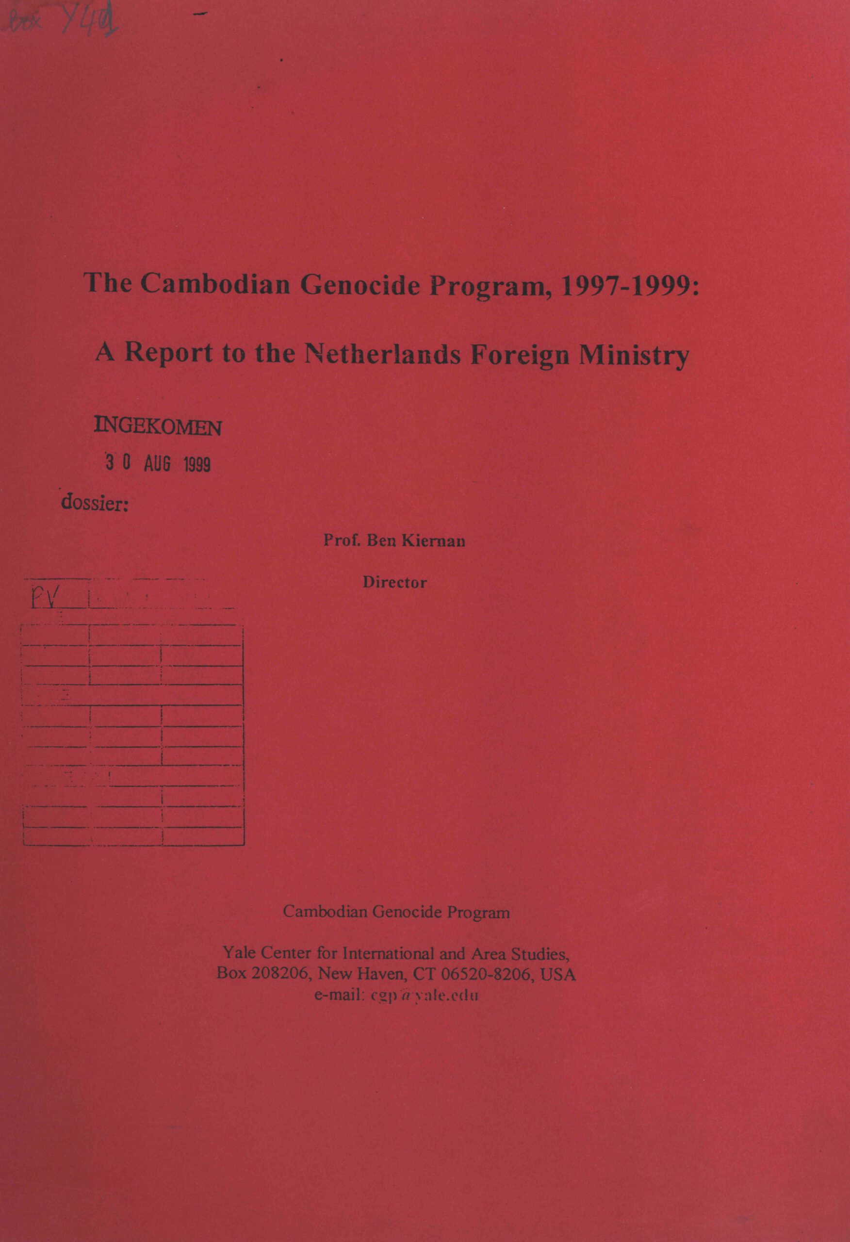The Cambodian Genocide Program, 1997-1999: A report to the Netherlands Foreign Ministry.