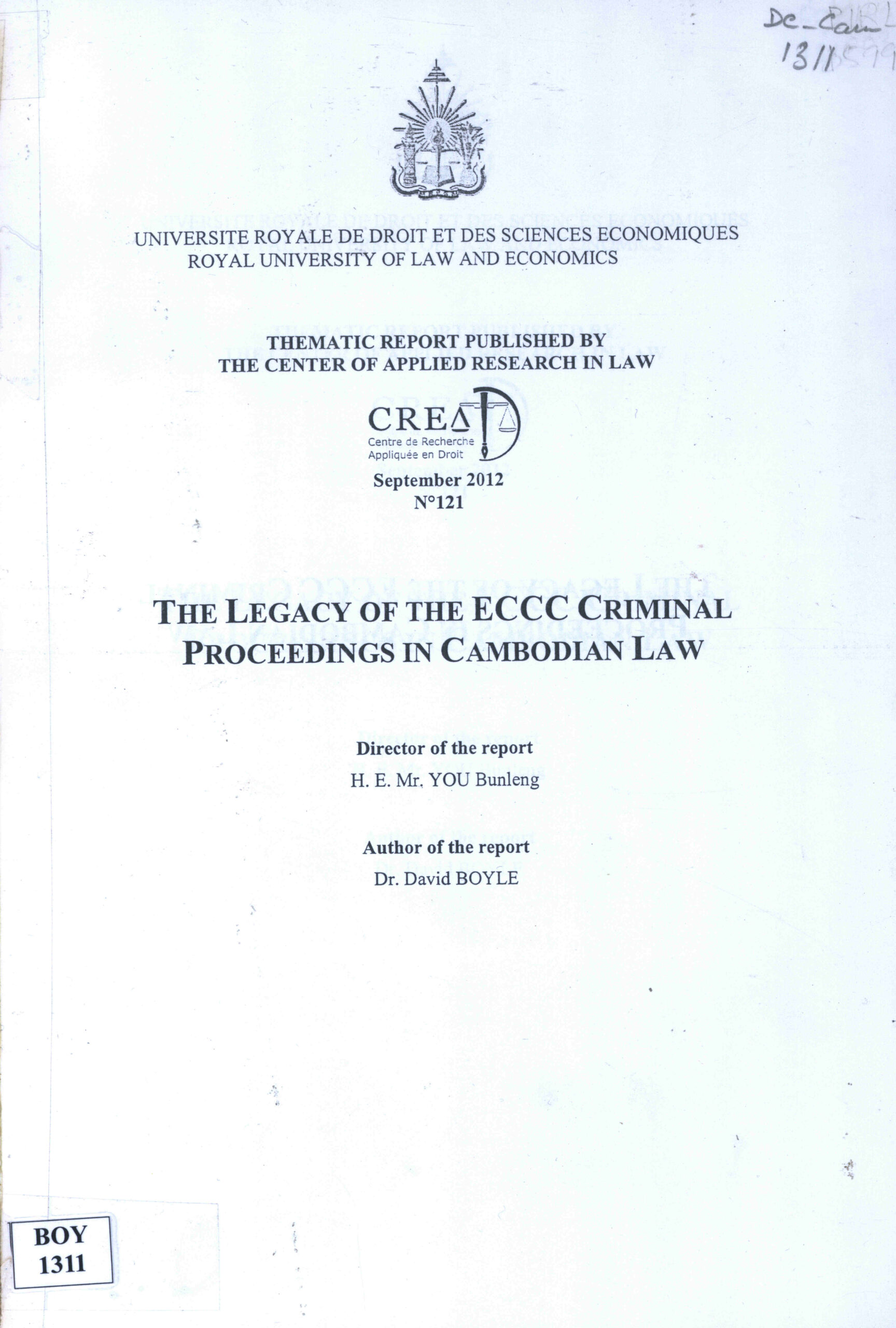 The Legacy of the ECCC Criminal Proceeding in Cambodian Law. (Report).