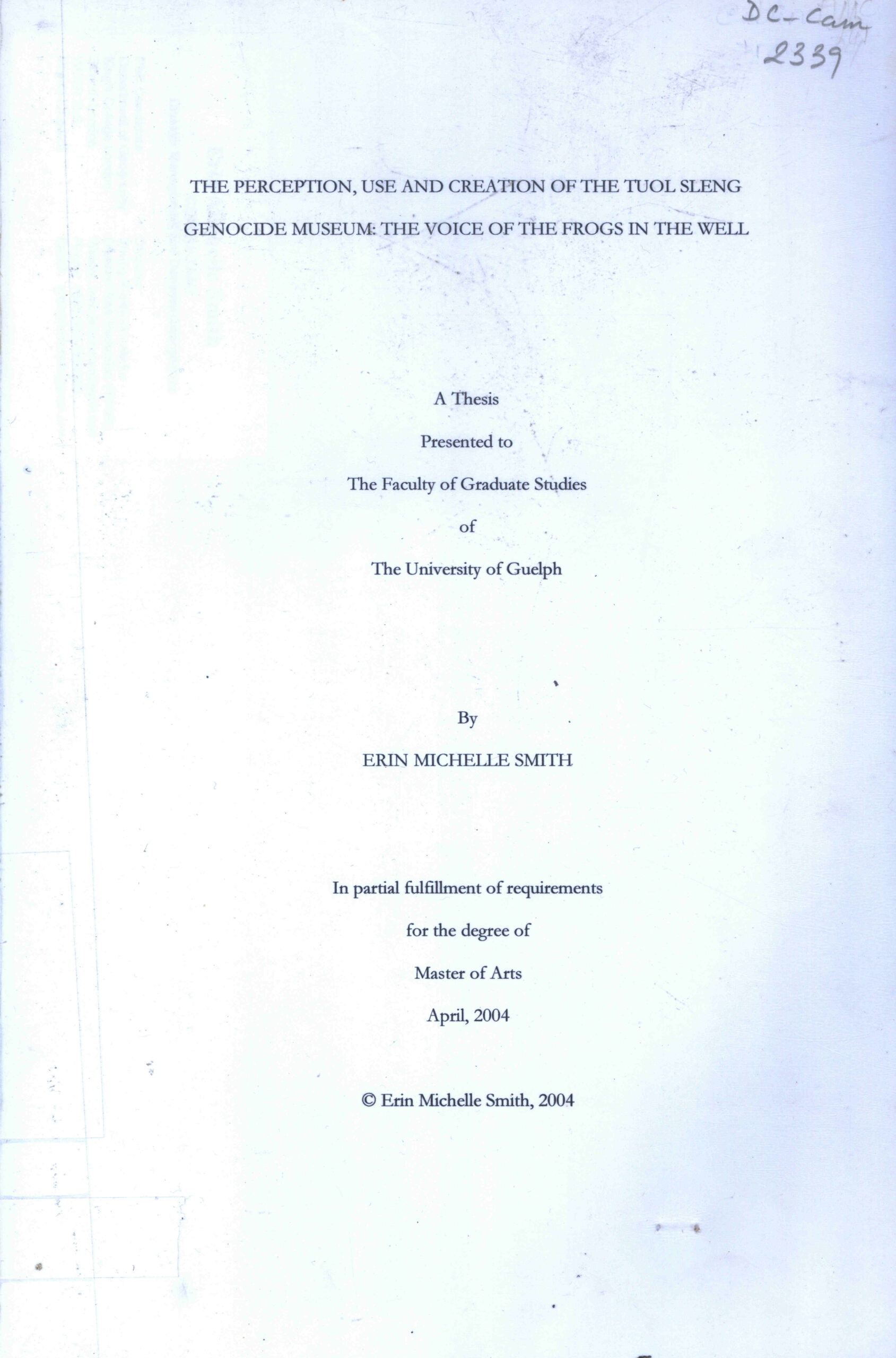 The perception, use and creation of the Tuol Sleng Genocide Museum: The Voice of the Frogs in the Well: A Thesis Presented to the Faculty of Graduate Studies of The University of Guelph.