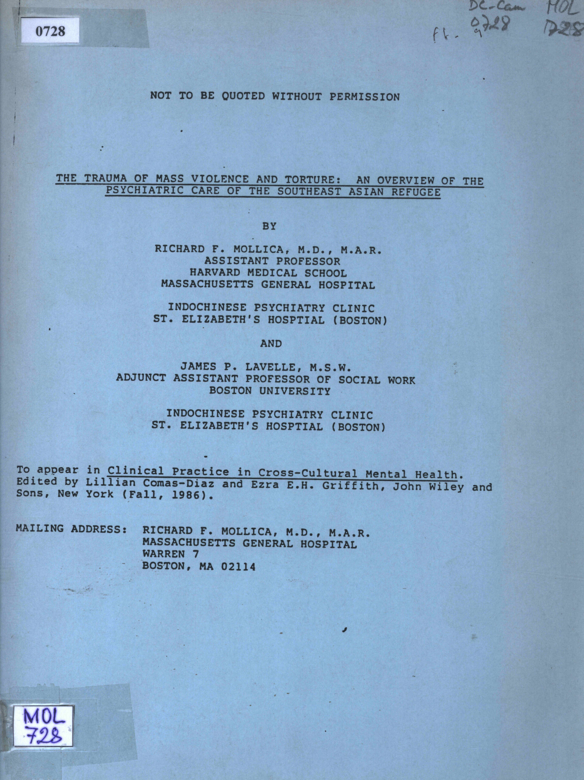 The Trauma of mass violence and torture: an overview of the Psychiatric care of the southeast Asian refugee.