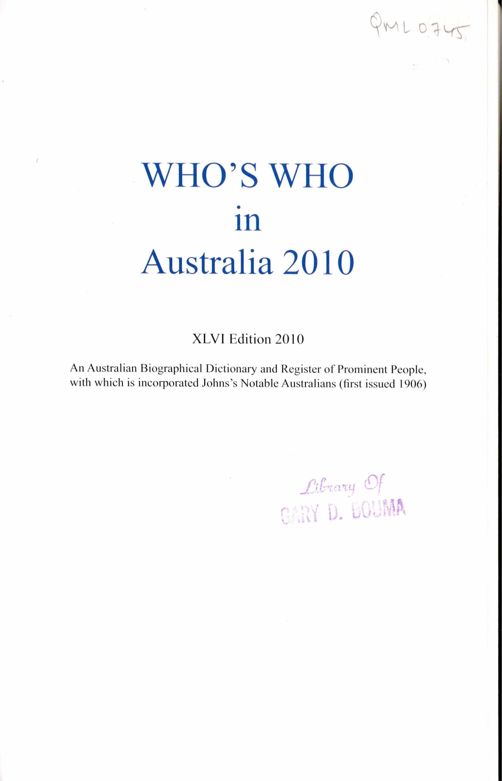 Who’s Who in Australia 2010.