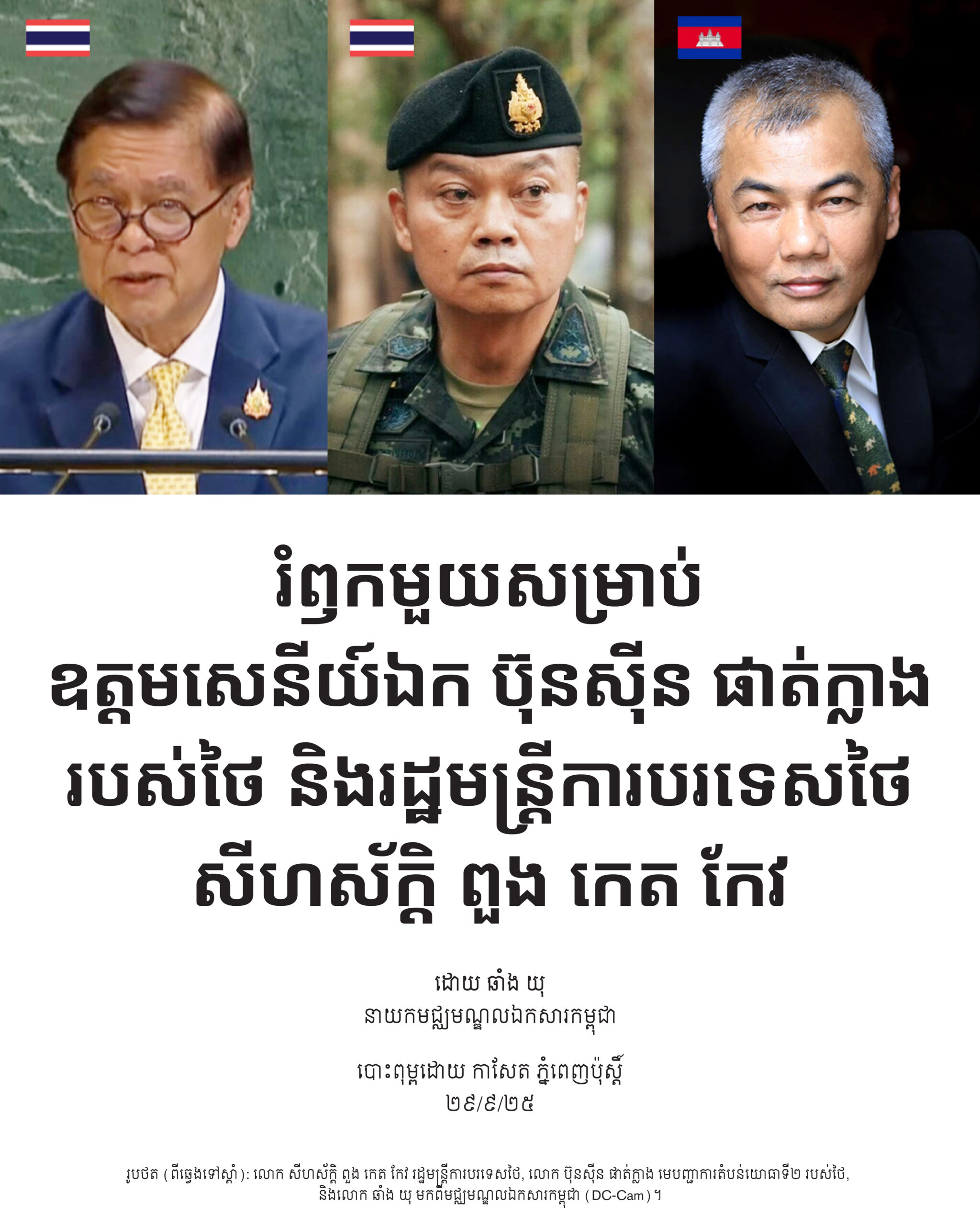 រំឭកមួយសម្រាប់ឧត្តមសេនីយ៍ឯក ប៊ុនស៊ីន ផាត់ក្លាង របស់ថៃ និងរដ្ឋមន្ត្រីការបរទេសថៃ សីហស័ក្តិ ពួងកេតកែវ, ២៩ កញ្ញា ២០២៥