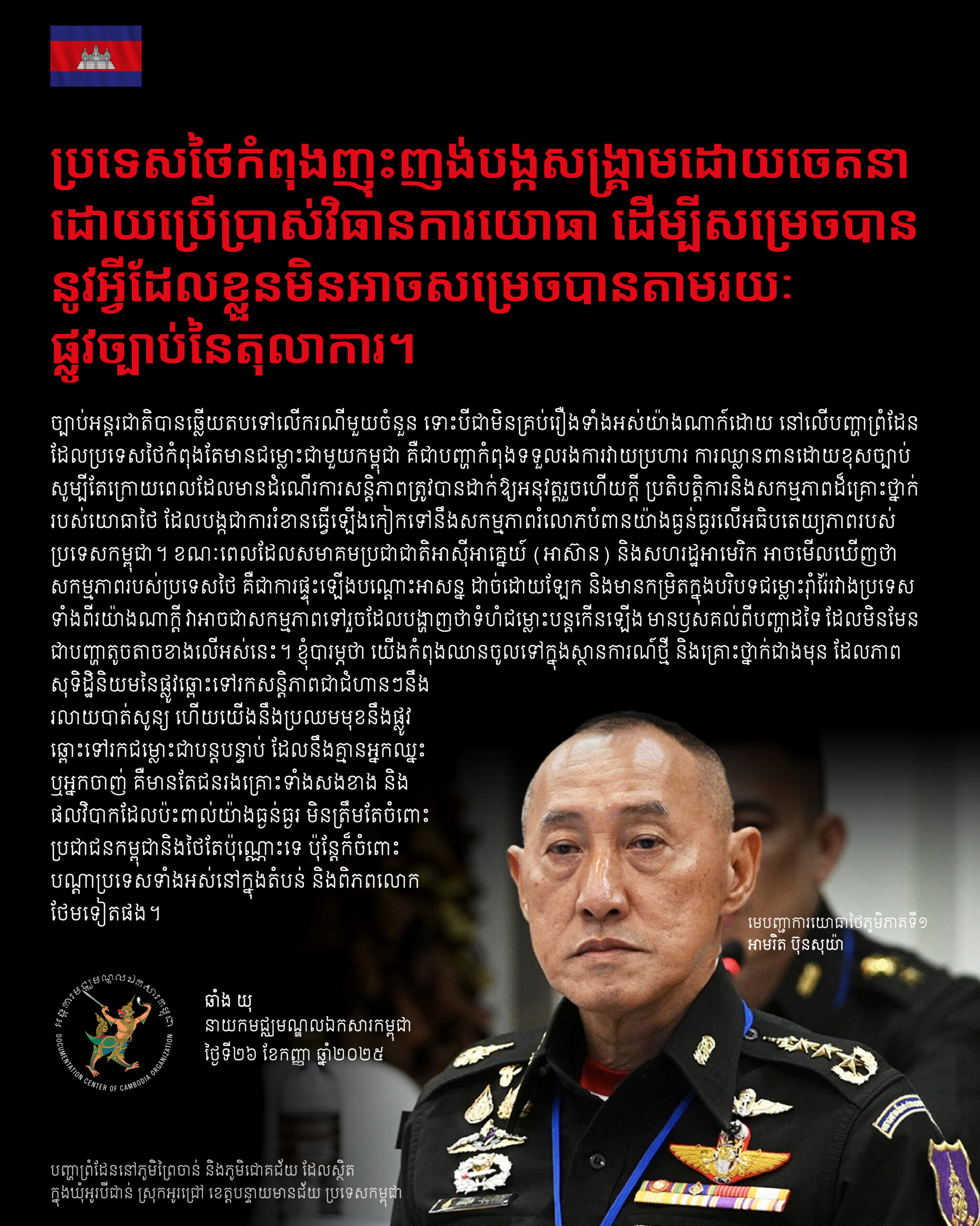 ប្រទេសថៃកំពុងញុះញង់បង្កសង្រ្គាមដោយចេតនា, ២៦ កញ្ញា ២០២៥