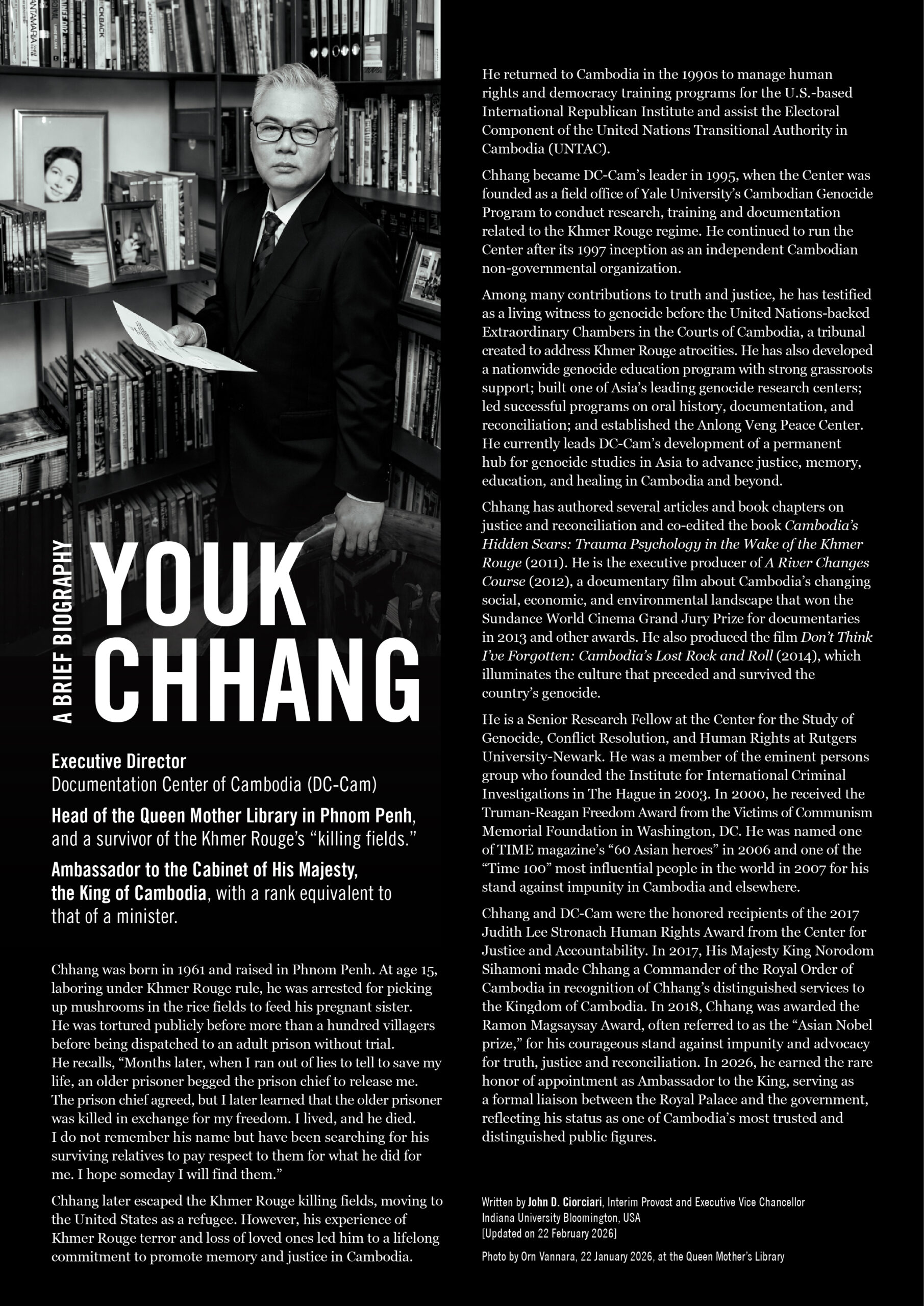 DCCAM: Ambassador Youk Chhang, Brief Biography 2026